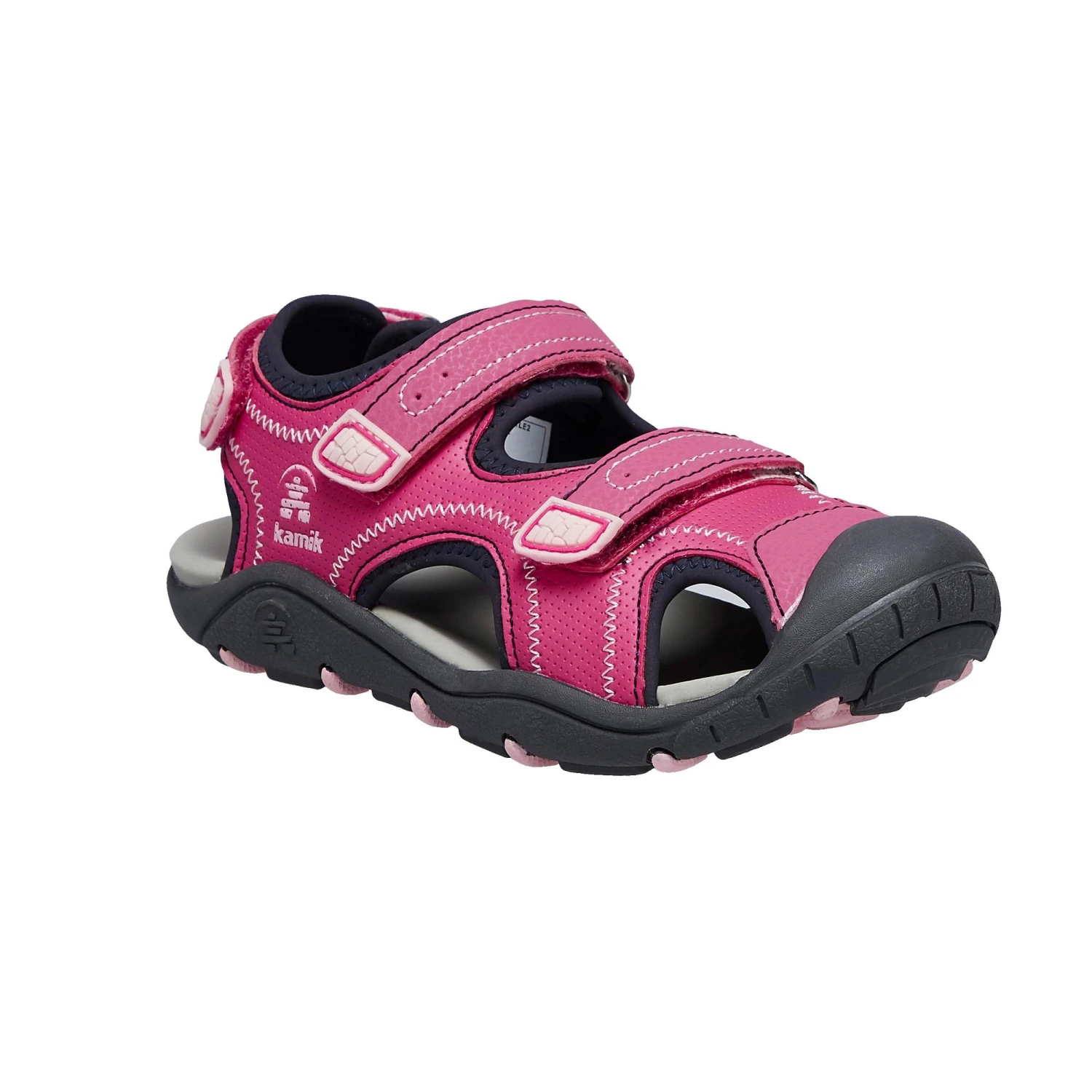 Strapazierfähig, schmutzunempfindlich und schnelltrocknend. Und: mit drei regulierbaren Klettriemen ausgestattet. So lässt sich die Sandale auch von kleinsten Outdoor-Experten kinderleicht und eigenständig an die Füße bringen.