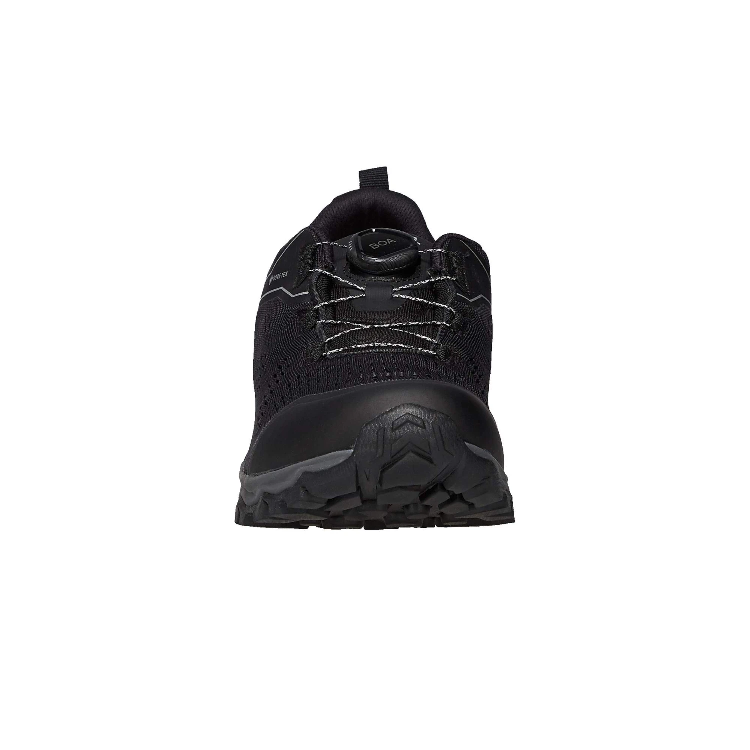 Der sportliche Wanderschuh bietet aber nicht nur im Vorfußbereich eine klasse Passform. Dank des BOA-Schnürsystems kann auch ein besonders sicherer Sitz garantiert werden. Vor allem lässt es sich besonders einfach bedienen und ist trotz des filigranen Aussehens unwahrscheinlich reißfest. Als Obermaterial kommt synthetisches Mesh-Gewebe zum Einsatz, dass neben seinem geringen Gewicht auch für eine erstklassige Atmungsaktivität sorgt. Für Wetterschutz ist der flotte Halbschuh mit einer wasserdichten Gore-Tex Membran ausgestattet.